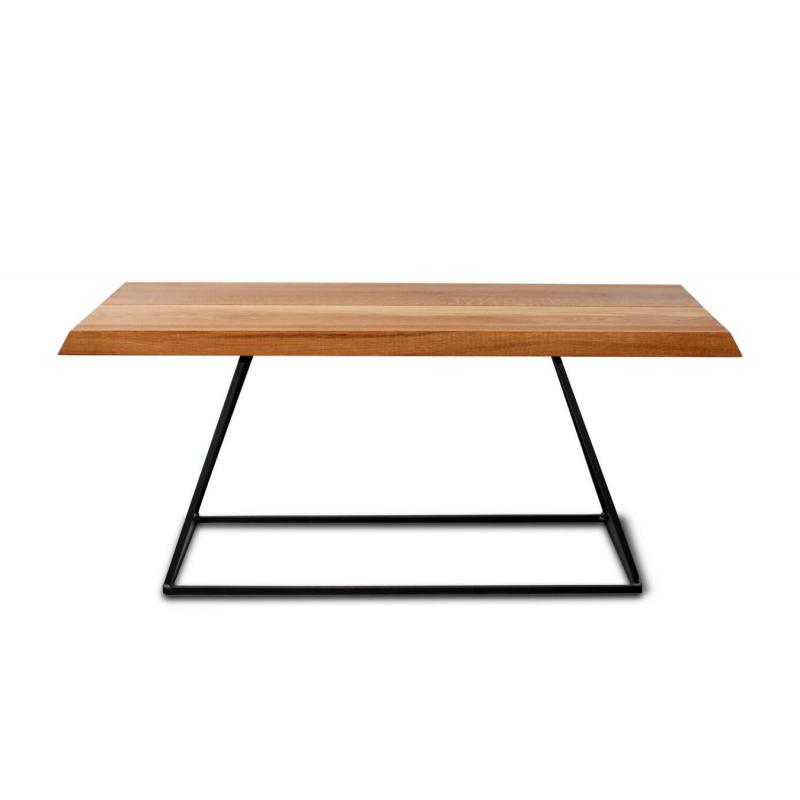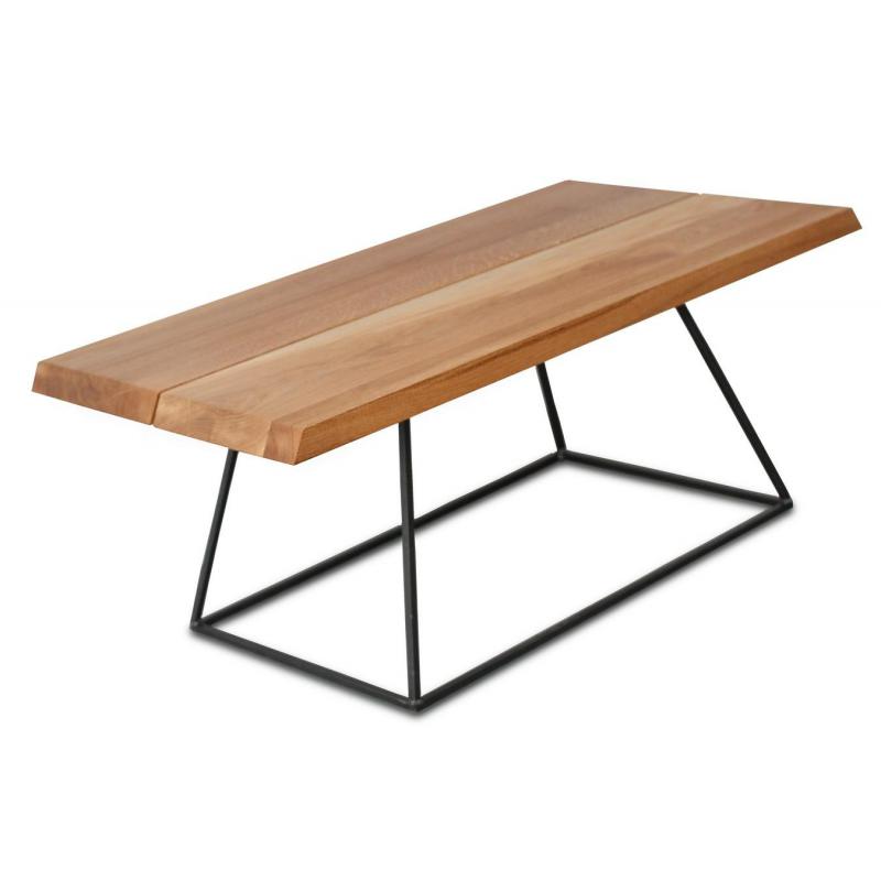 Blat ławy to pełne lite drewno dębowe, prezentujące piękne usłojenie drewna, jego ciepłą kolorystykę i widoczne sęczyny z pęknięciami. Stelaż stalowy z pręta kwadratowego - 1x1 cm.