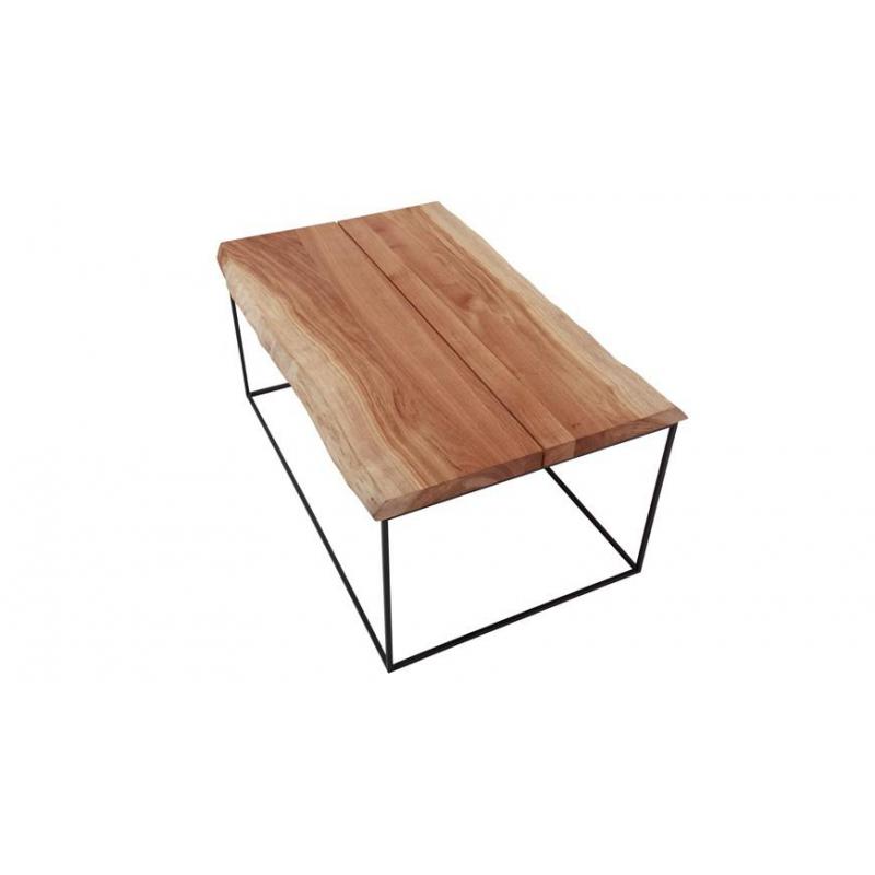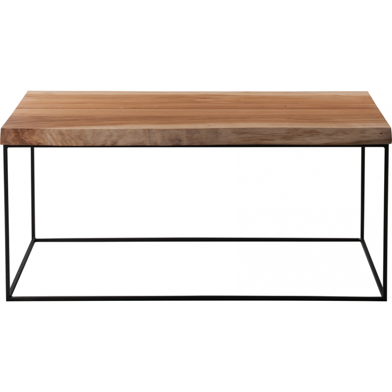 Blaty regałów, stołów i stolików wykonane są z litego dębu, które prezentują piękne usłojenie drewna, jego ciepłą kolorystykę i widoczne sęczyny z pęknięciami. Konstrukcja, stelaż stolików wykonana jest ze stalowego pręta kwadratowego 1x1 cm.