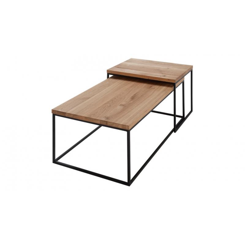 Blaty regałów, stołów i stolików wykonane są z litego dębu 3 cm, które prezentują piękne usłojenie drewna, jego ciepłą kolorystykę i widoczne sęczyny z pęknięciami, natomiast krawędzie blatu są proste. Konstrukcja, stelaż jednego stolika wykonana jest ze stalowego pręta kwadratowego 1,5 x 1,5 cm, natomiast drugi ma wymiar 1 x 1 cm.