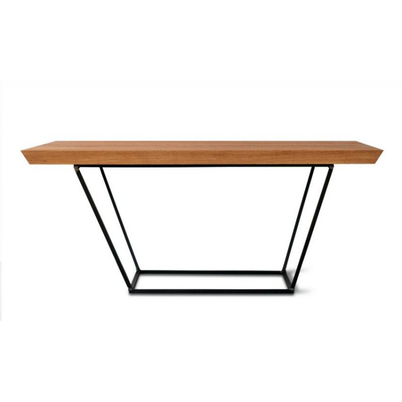Blat ławy to pełne lite drewno dębowe, prezentujące piękne usłojenie drewna, jego ciepłą kolorystykę i widoczne sęczyny z pęknięciami. Stelaż stalowy z pręta kwadratowego - 1x1 cm.
