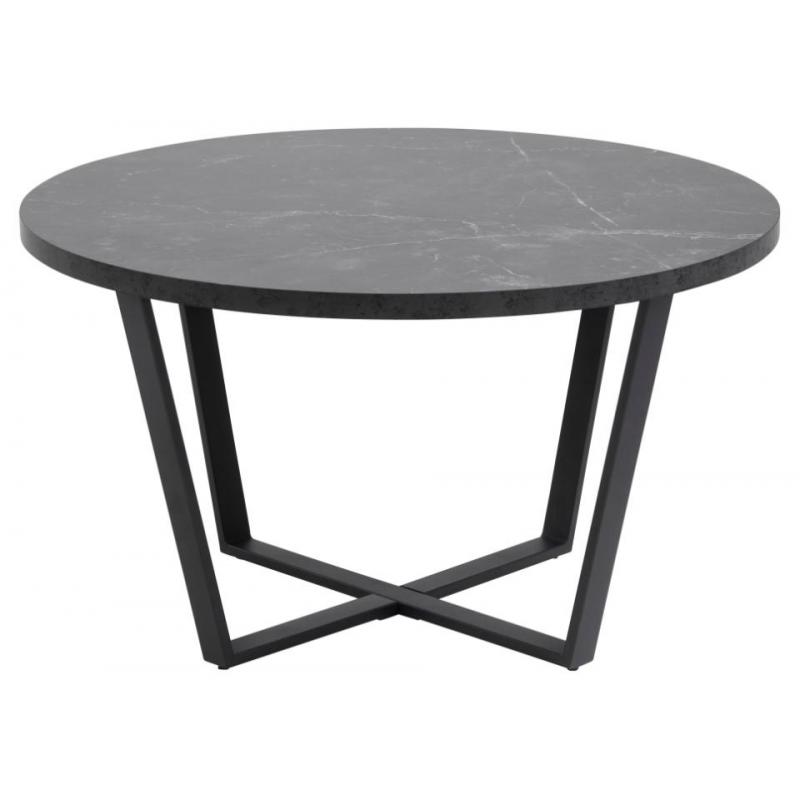 Nowoczesna propozycja szanowanej duńskiej marki Actona, która słynie na niemalże całym świecie, ze względu na swoje solidne wykonanie i współczesny design. Okrągły, czarny blat został wykonany z płyty melaminowanej, imitującej marmur. Taki element nadaje elegancji każdemu wnętrzu. Opiera się on na czterech nogach, wykonanych z metalu malowanego proszkowo na kolor czarny, o wykończeniu matowym. Nogi łączą się przy podłożu, tworząc krzyżową podstawę.Wysyłka — paczka Waga - 22 k.